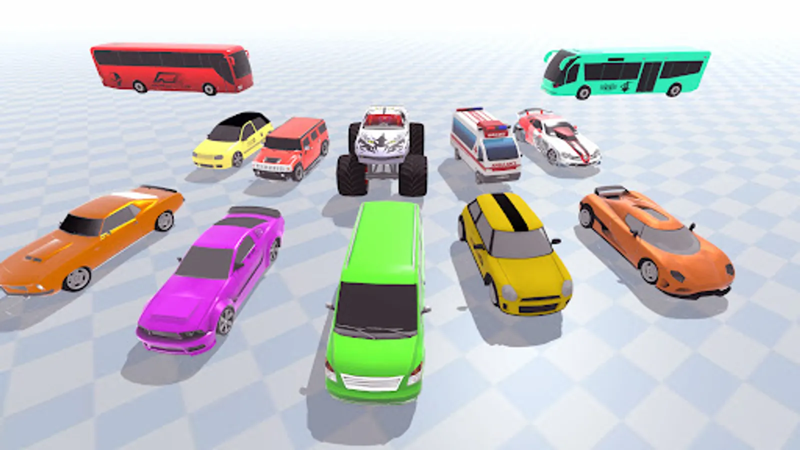 There are many vehicles to drive on, like cars, buses, school buses, heavy truck, jeep, future racing car, 4x4 truck, truck, mini truck, SUV, police car, ambulance and many more.
