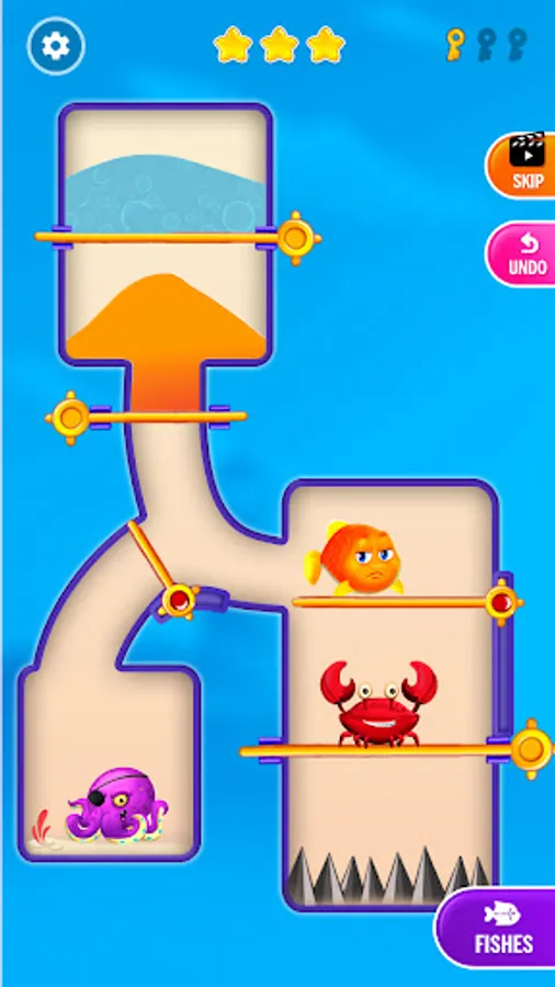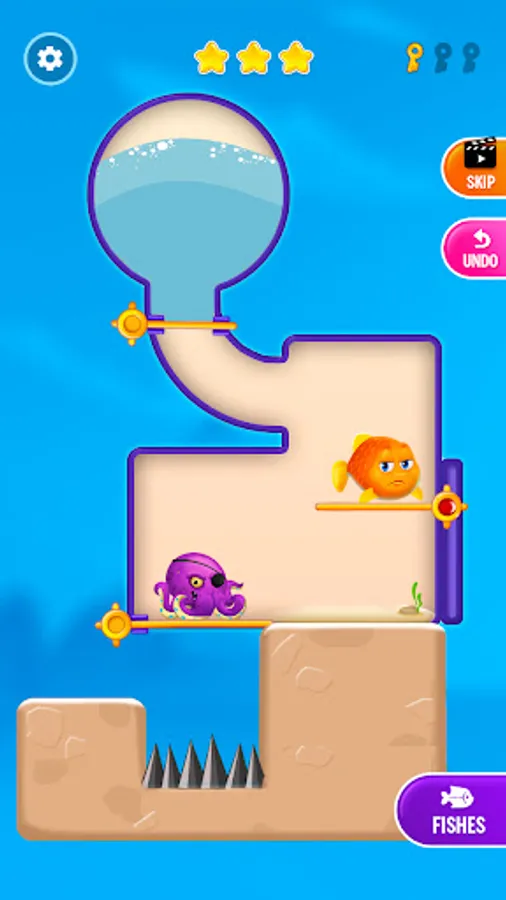 Think out of the box and complete each level that comes with three stars for you to win. Figure out which pins to pull and in what order to save the fish but remember if u save the fish before killing the BOSS enemies you are lost and got to play the game again.