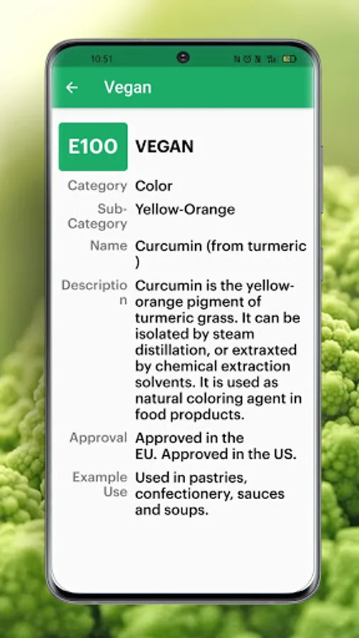 - Green. That means the additive is derived from a plan or it is a plant based ingredient.