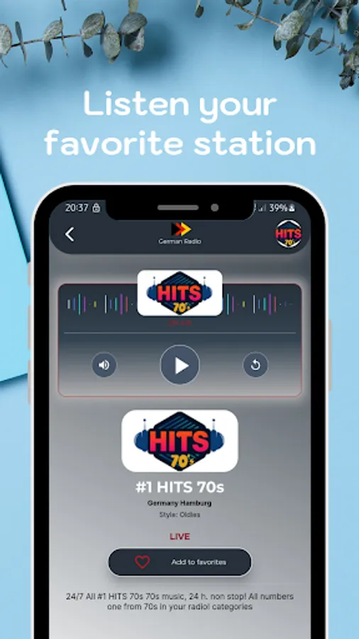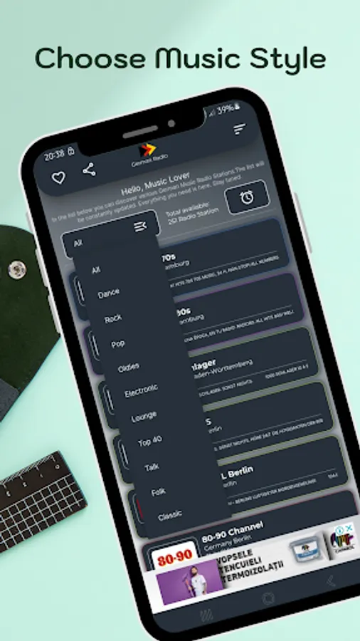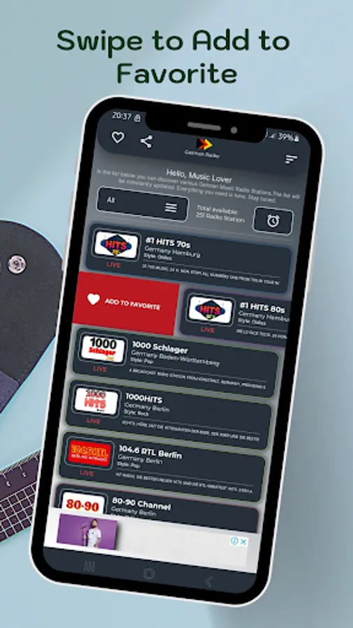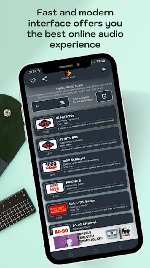 The ergonomics of Radio Germany has been studied to be the simplest and fastest radio application, thus offering you a fun and easy listening experience đ