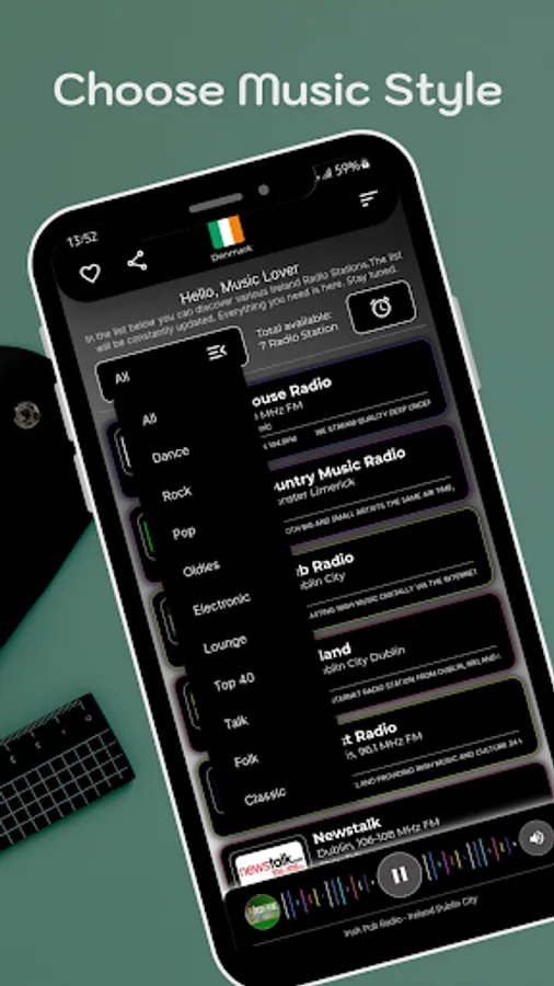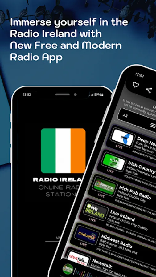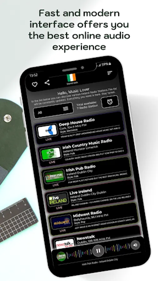 The ideal radio player to listen live and for free to the best music, online radio, FM radio and AM radio from Ireland!
