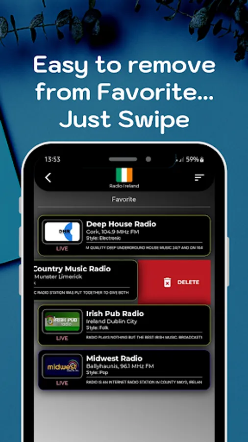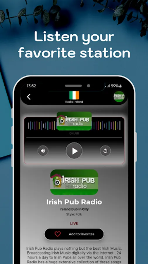 The ergonomics of Radio Ireland has been studied to be the simplest and fastest radio application, thus offering you a fun and easy listening experience đ