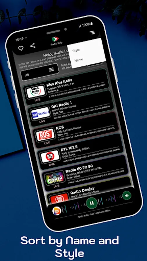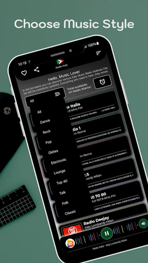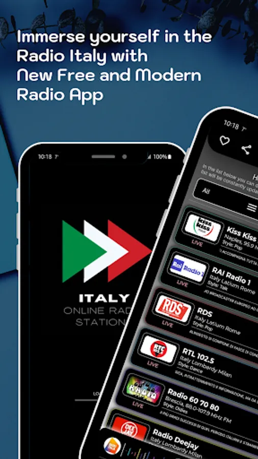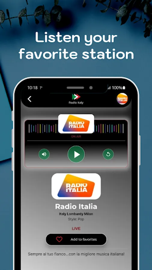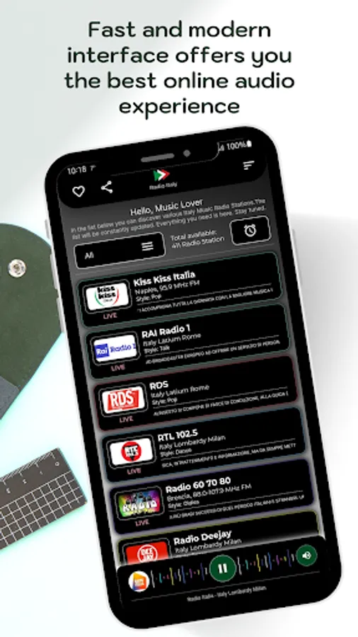 The ergonomics of Radio Italy has been studied to be the simplest and fastest radio application, thus offering you a fun and easy listening experience 😊
