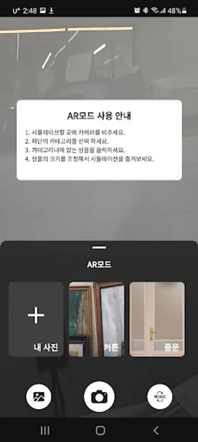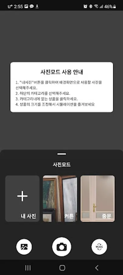 커튼 중문을 직접 시뮬레이션 할 수 있는 앱