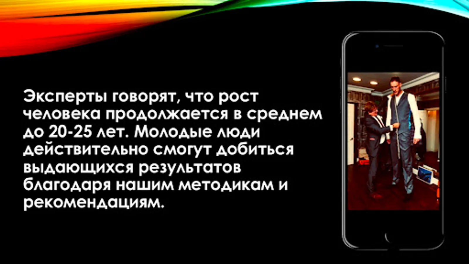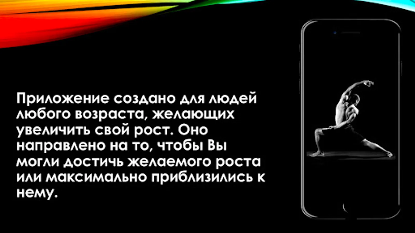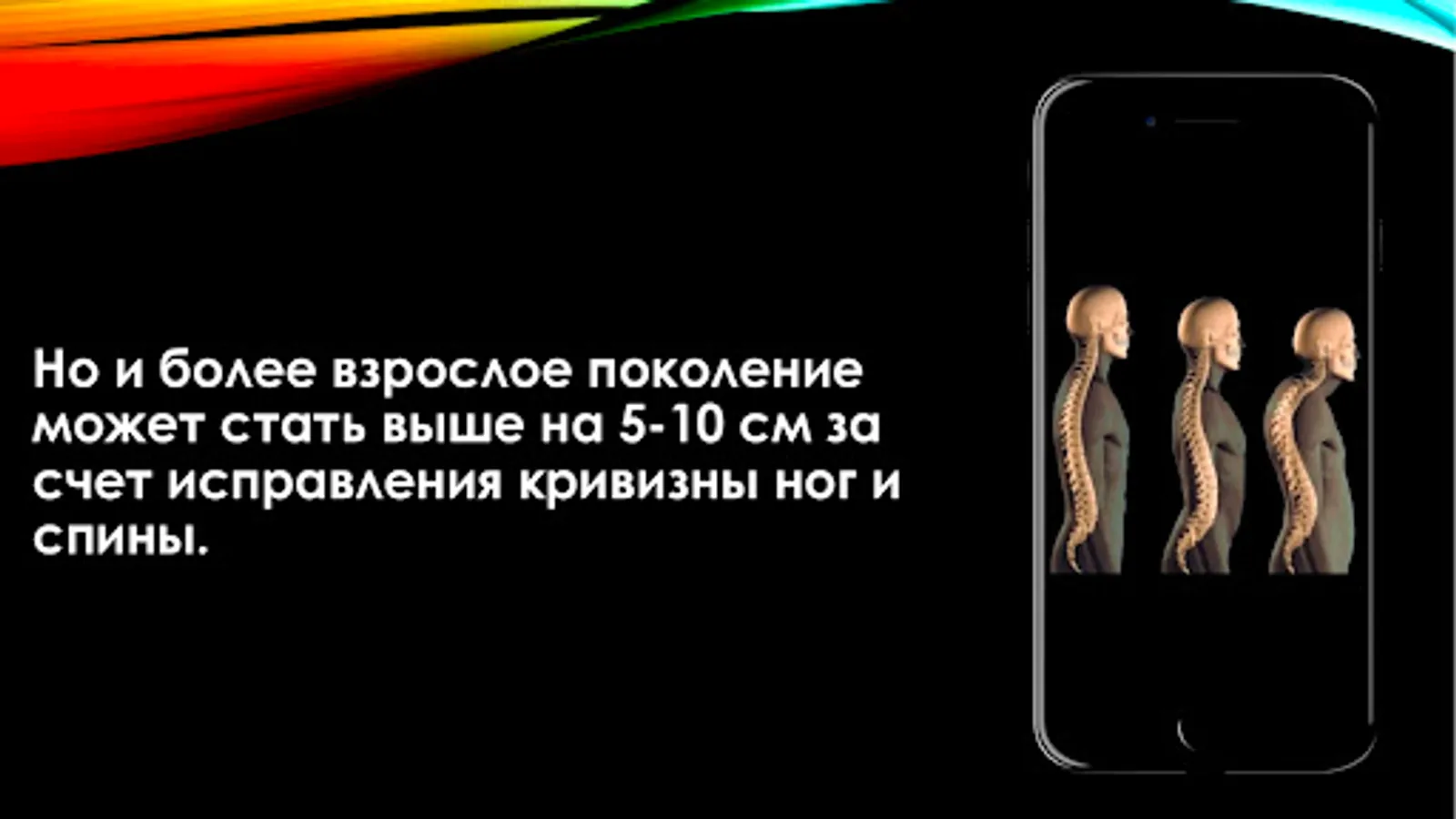 The application is designed for people of any age who want to increase their height or correct their posture. Anyone can achieve the desired growth or as close as possible to it.