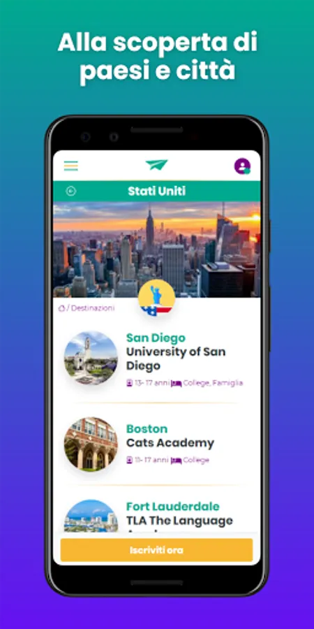 Choose a country, a city and a Study Holiday Center to view all the information, photos, location on the map, planned activities and participation fees.