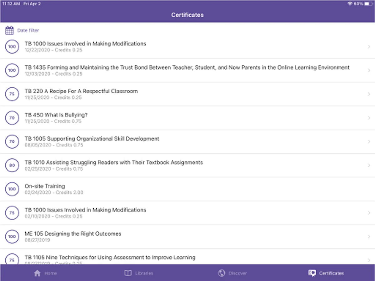 Easily manage users, assign courses, and monitor progress in The Master Teacher's eLearning app. Courses can be required and assigned due dates as well as the ability to track all PD hours within one system. Course completion credits and certificates as well as user-friendly transcripts. Take your staff's professional learning to the next level with The Master Teacher's eLearning app.