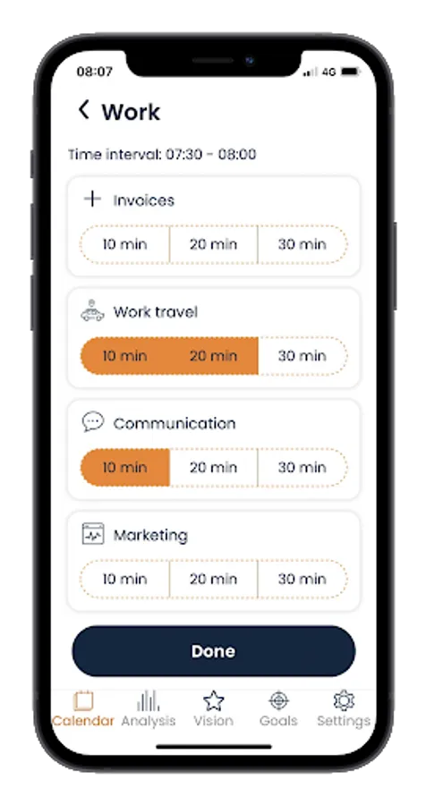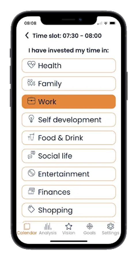 Master Time app will enable you define a clear vision for each area of your life, and will help you to invest your time in actions which support achieving your vision.