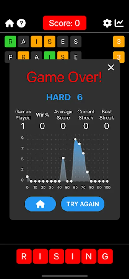 After each guess, you will be given hints as to how many letters you got right or wrong. Each guess will take 5 points off your final score, so think carefully before each attempt!