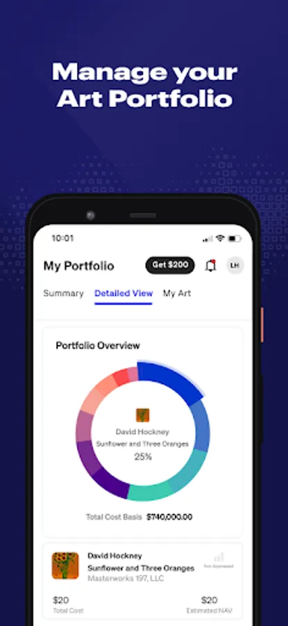 Our team of art experts carefully curates and researches each artwork to ensure its authenticity, provenance, and potential value. You can invest in a piece for as little as $20 and watch your investment grow over time. Plus, with the artwork itself serving as collateral, you can be sure your investment is secure.
