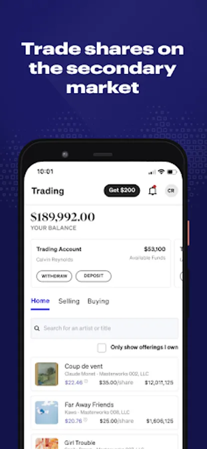 At Masterworks, we understand that investing in art can be intimidating, which is why we provide educational resources and insights about the art market to help you make informed investment decisions. You'll also have access to our trading platform, which allows you to buy and sell shares in artworks like stocks, giving you even more flexibility and control over your portfolio.
