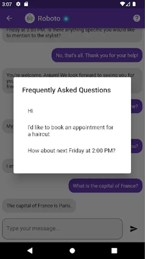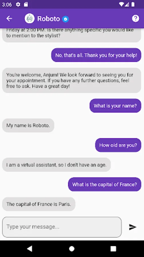 This is Test Chatbot app for a personal university project. This app doesn't take any user data or any other data from the user. And only has built in responses and is a test ui app built with flutter