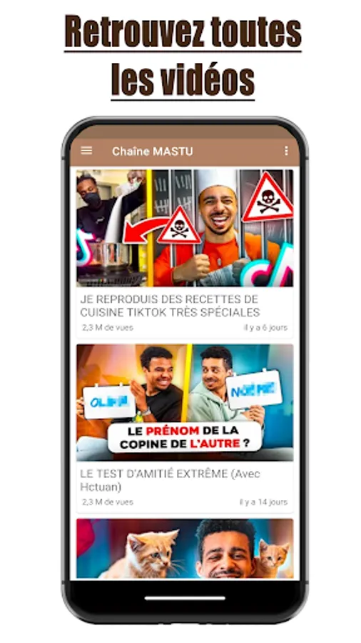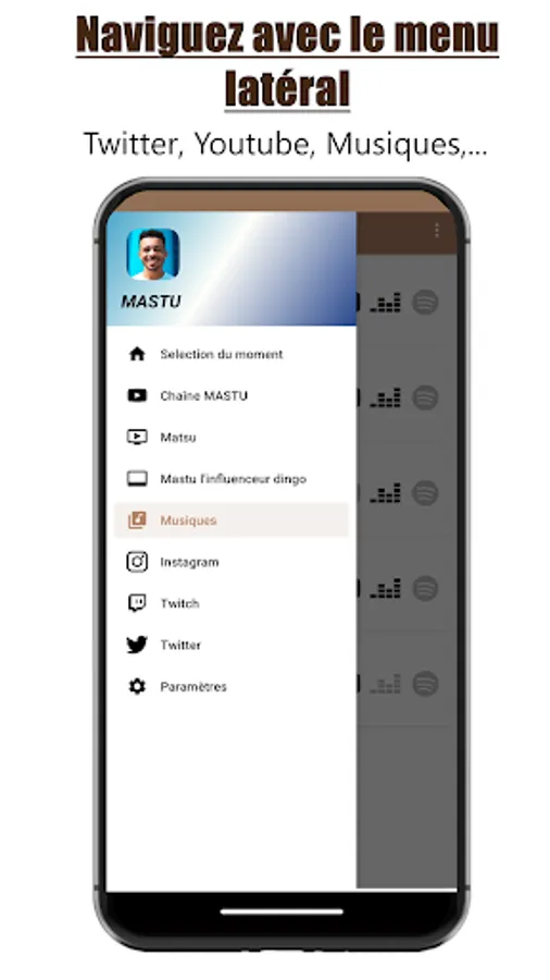 The app includes all publications (Youtube, Twitter, Twitch, Instagram, Music,...)