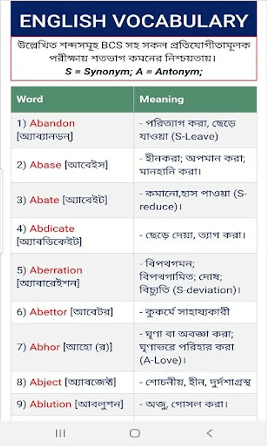 BCS, Varsity Admission, Bank Job, IBA, BBA, MBA, EMBA, Barron's 3500, GRE 5000, SAT Hit Parade সহ সকল প্রতিযোগিতা মূলক পরীক্ষার প্রশ্ন অনুসারে তৈরি করা। Word গুলো Number অনুসারে দেওয়া হয়েছে যাতে ছাত্রছাত্রীরা বুঝতে পারে সে কতগুলো ওয়ার্ড এর Meaning জানে।