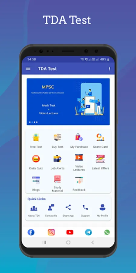 Welcome to TDA TEST – TDA TEST is most trusted and useful App for Government Exams preparations.