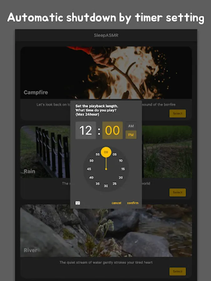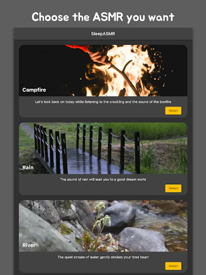 This app is designed to be a comma in your tired daily life based on simple ASMR playback.