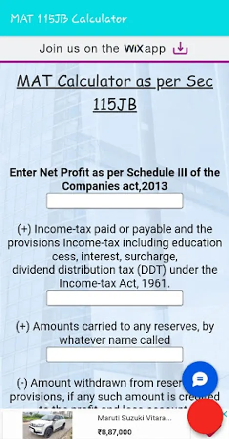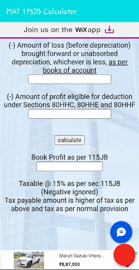 This app provides calculator facility to calculate book profit as per section 115JB of the Income tax act,1961