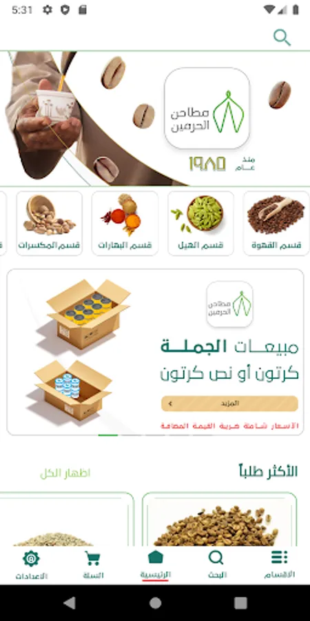 Order quickly and receive your order from Bin Hail, spices, nuts, legumes, saffron, canned beans, coffee, of all kinds, tea, sugar, rice, at the price of one bag, carton, half carton and more.. home delivery