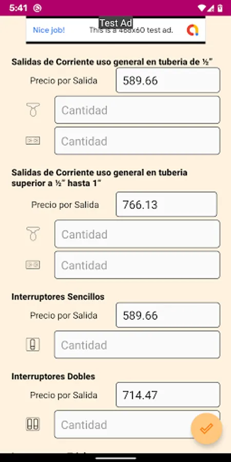 To use the electrician area, you must take into account that for each outlet there is a space where the price for installation of that outlet is housed, which has a pre-established legal value only for the Dominican Republic, in the following box where the type of outlet appears is will place the number of outlets to install in the home or space where you are working, it should be noted that the price per installation can be modified since the application will be used throughout Latin America. The devices that are in the application but that are not included in your residential or commercial electrical installation must be left empty and the application will automatically add the value of "0" so that these are not calculated. At the end you only have to click on the orange button with the check icon to obtain the results of your quote. In case you need to get other calculations, you just have to press the button that says "Clear" and the boxes will be blank.