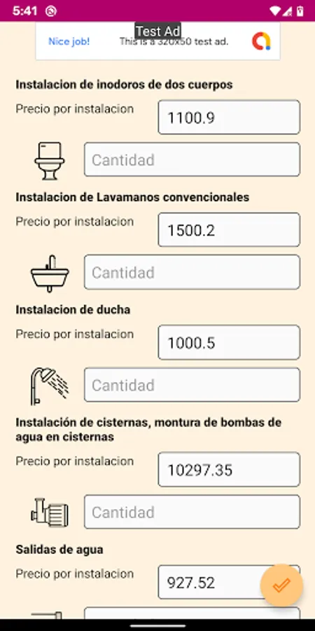 To use the plumber's area, you should only bear in mind that for the installation of each appliance there is a box with the price per installation of each one and the one that follows is where you will write the number of appliances to install, the price box per Installation has a preset legal value valid only for the Dominican Republic, in case you are in a different country you have the option to modify these prices. The devices that are in the application but are not included in your installation must be left empty and the application will automatically add the value of "0" so that they are not calculated. At the end you only have to click on the orange button with the check icon to obtain the results of your quote. In case you need to get other calculations, you just have to press the button that says "Clear" and the boxes will be blank.