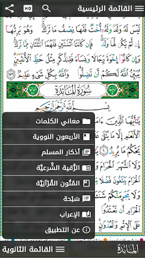 The colored Tajweed Mushaf with the narration of Hafs on the authority of Asim, its pages are produced by Dar Al-Maarifa, the owner of the copyright, the application is very fast and without ads and contains a lot of features, we mention some of them: night mode - zoom - search - interpretations - indexes of all kinds - supplications - texts - the nuclear forty - Legal ruqyah ...) and many other features that you can try. Do not forget us from your sincere prayers and support us by spreading it among your friends 🇩🇿
