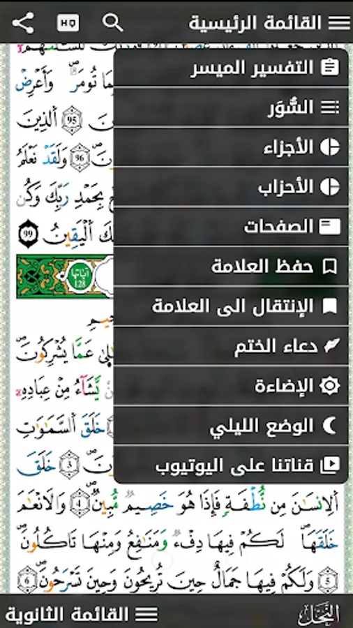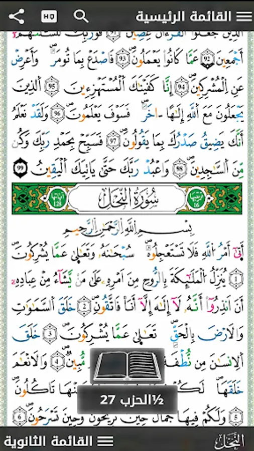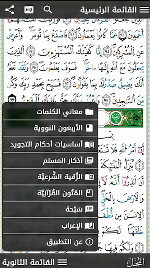 Colored Tajweed Quran with the narration of Warsh from Azraq Road, its pages are produced by Dar Al-Maarifa, the copyright holder, the application is very fast and without ads and contains many features, some of which are: Night mode - Zoom - Search - Interpretations - Indexes of all kinds - Remembrances - Components - Forty Nawawi - The legal ruqyah ...) and many more features that you can try, do not forget us from your sincere prayers and support us by spreading it among your friends
