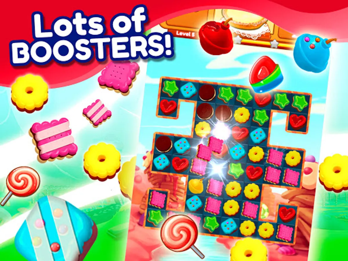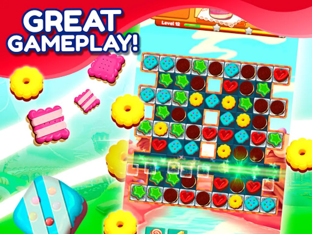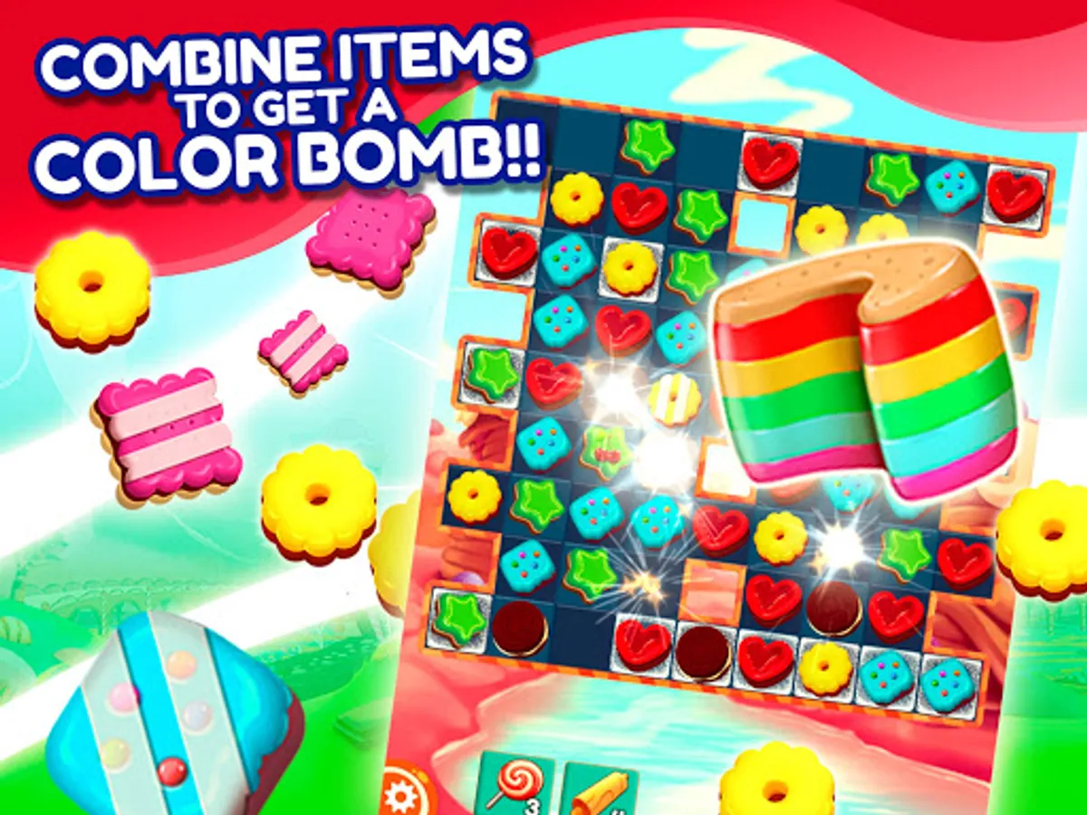 Cookie Match 3 Mania is a fun puzzle game where you can swipe and match tasty candy in thousands of delicious levels. Take on this exciting adventure, blast mouthwatering desserts, cookies, and lollipops and discover yummy candy combos and awesome rewards.