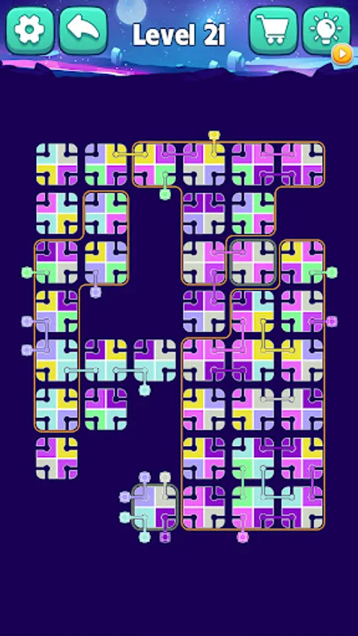 Arrange the tiles to match the colors of their sides to the adjacent tiles. When you manage to sort them out correctly, lines appear between them to confirm you did it correctly
