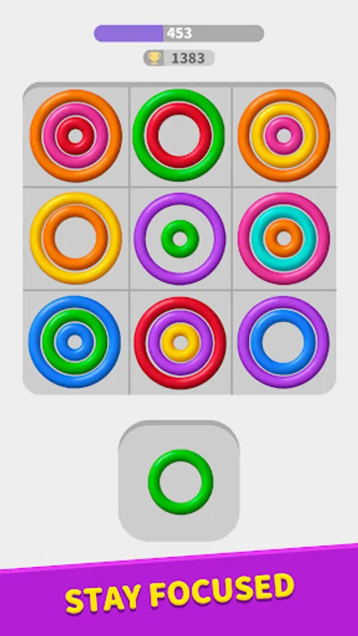 Color Rings Matching Puzzle is a color puzzle game.The game is easy to play, but it still requires strategical move, and logic thinking. You can play this fun game anytime and anywhere. Train your brain while having fun!