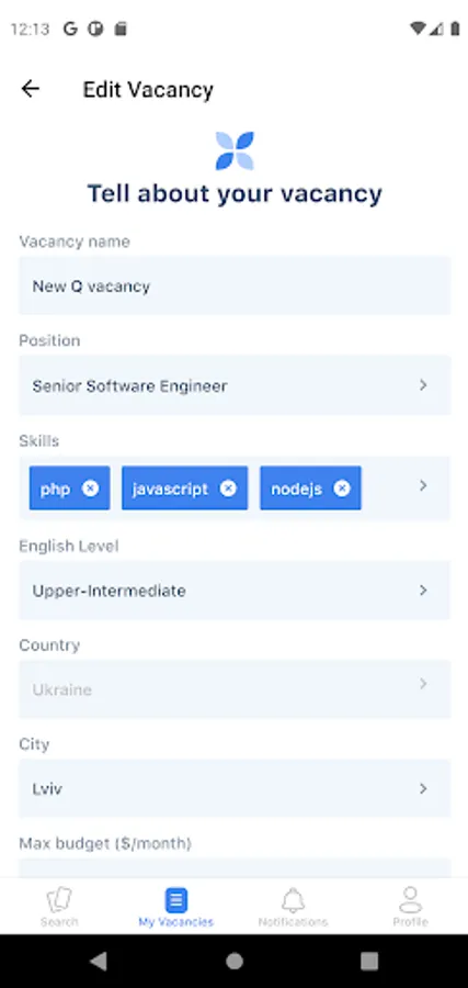 - Перемикання між профілем рекрутера та кандидата в один клік