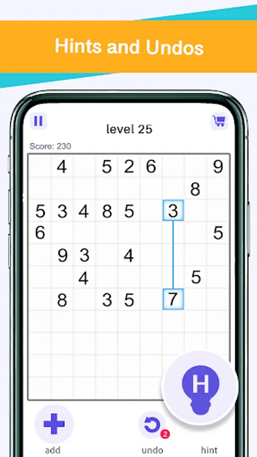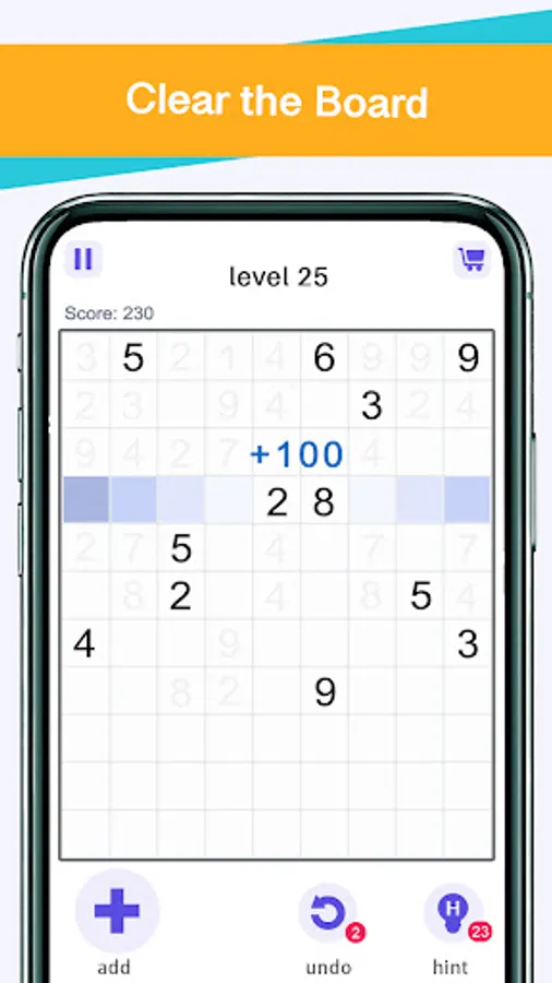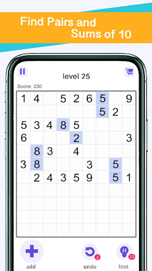 - Cross out the pairs of the same numbers (6-6, 3-3, 8-8) or those which add up to 10 (2-8, 3-7 etc). Two numbers can be removed by tapping on them one by one.