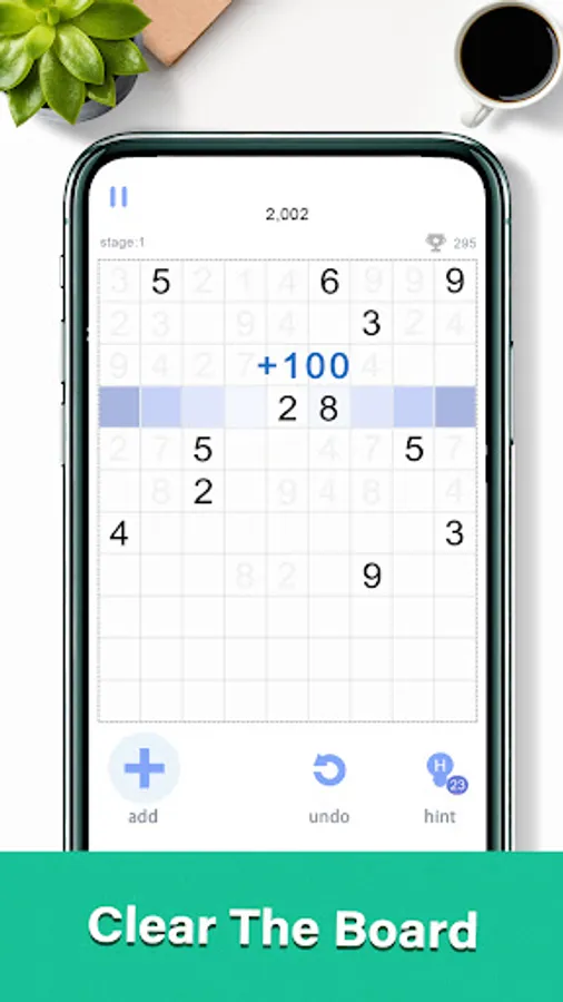 - Cross out the pairs of the same numbers (6-6, 3-3, 8-8) or those which add up to 10 (2-8, 3-7 etc). Two numbers can be removed by tapping on them one by one.