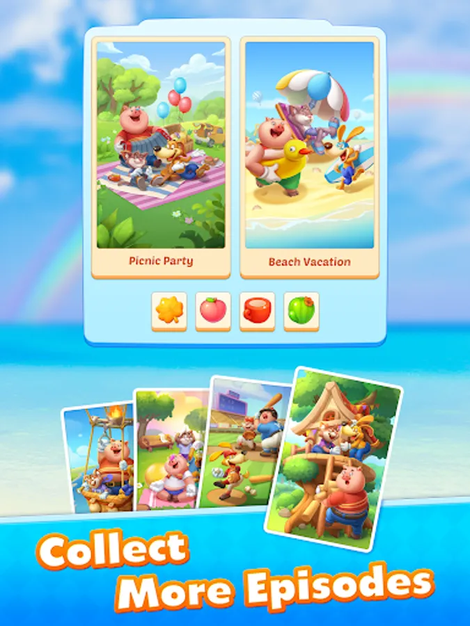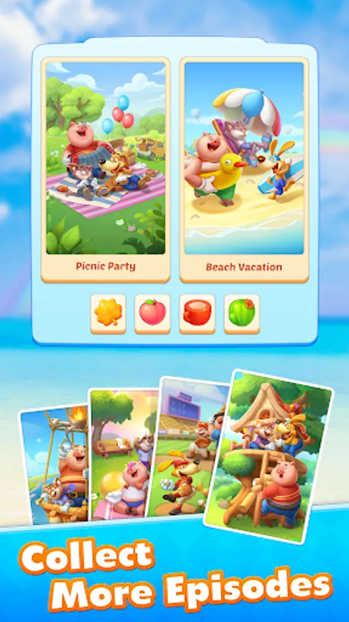 Come back every day, as there are always new daily tile matching puzzles to explore, which allows you to unlock more Episode pictures and tiles. Play faster and faster and keep improving matching tiles skills! A whole new experience!