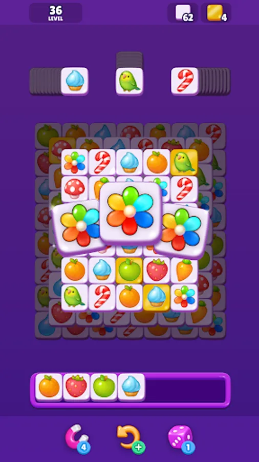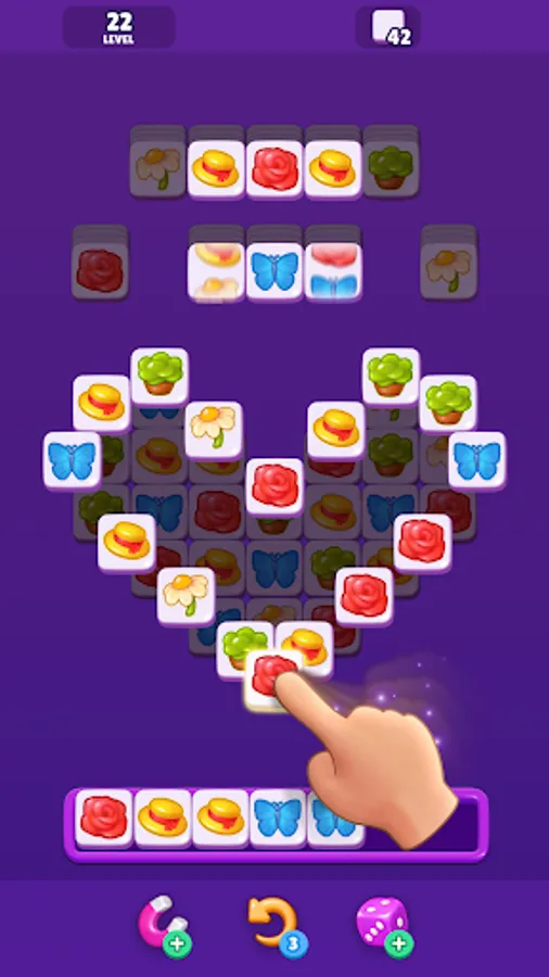 * Tap, merge, and blast three of the same tiles to clear the board.