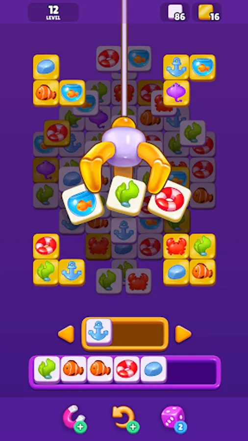 * Tapping on any available tile will remove it from the board and add it to one of the collector's slots.