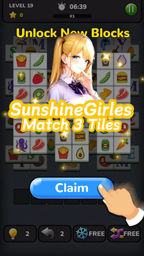 SunshineGirl Match 3 Tiles is a challenging matching game. This is a matching game. You have to carefully find three tiles of the same picture to eliminate them. Once all the tiles are matched, you can pass the current level! Our matching game contains many levels. Some levels can be difficult. Challenge your mind and solve puzzles, they will be easy and exciting!