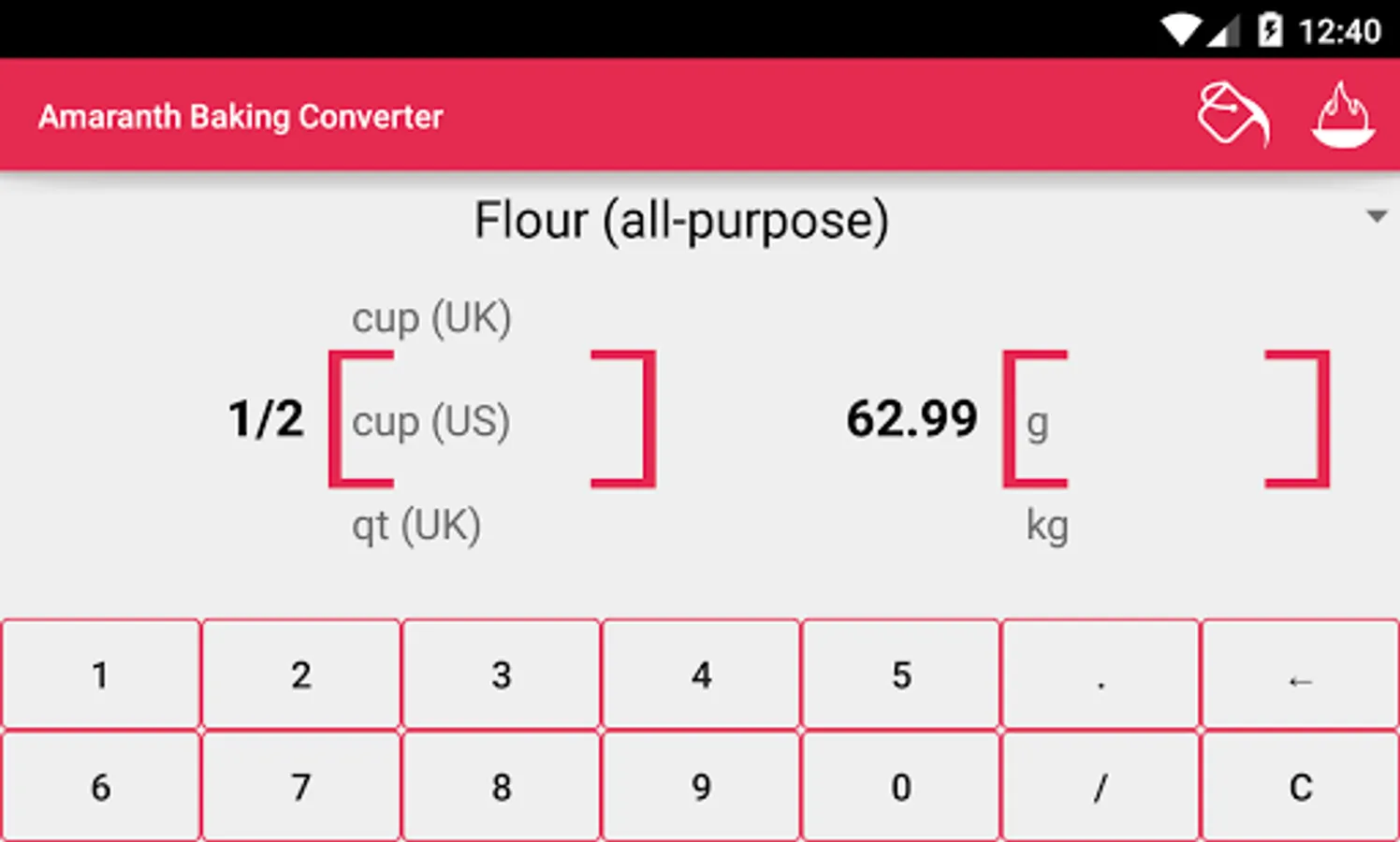 Amaranth Baking Converter helps you to convert baking ingredients of your choice easily between multiple units of volume and weight. Works with US, UK and metric units.