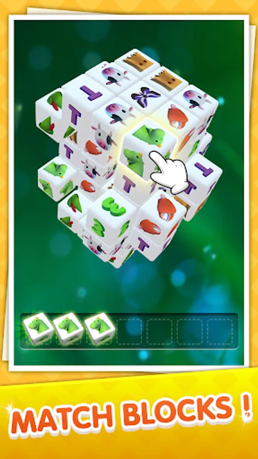 - In order to match 3 same 3D tiles, you can rotate the 3D cube.