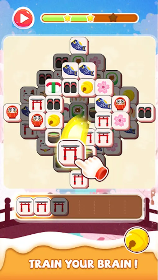 π Tap a tile and move it into the groove below. Once three identical tiles are collected in the groove, they will disappear.And you have room for 7 tile to match.