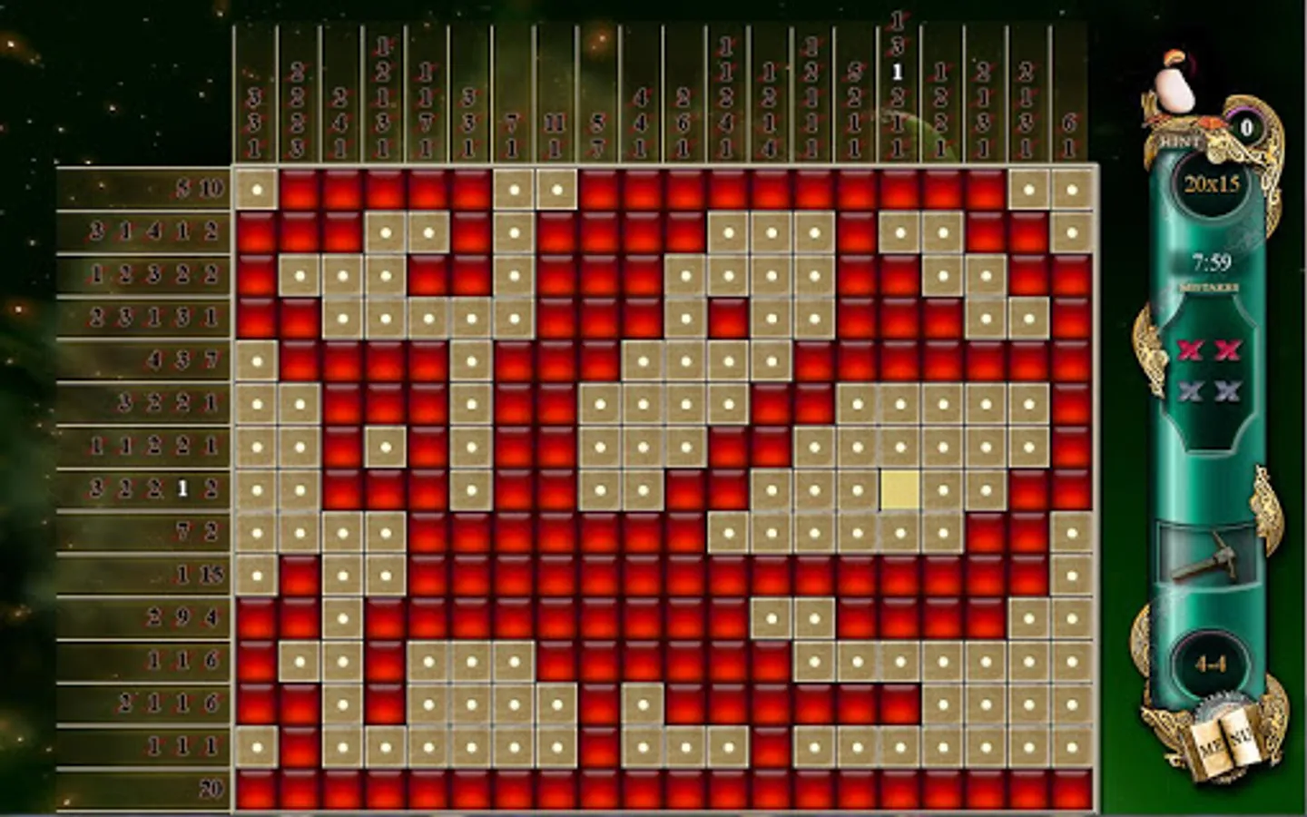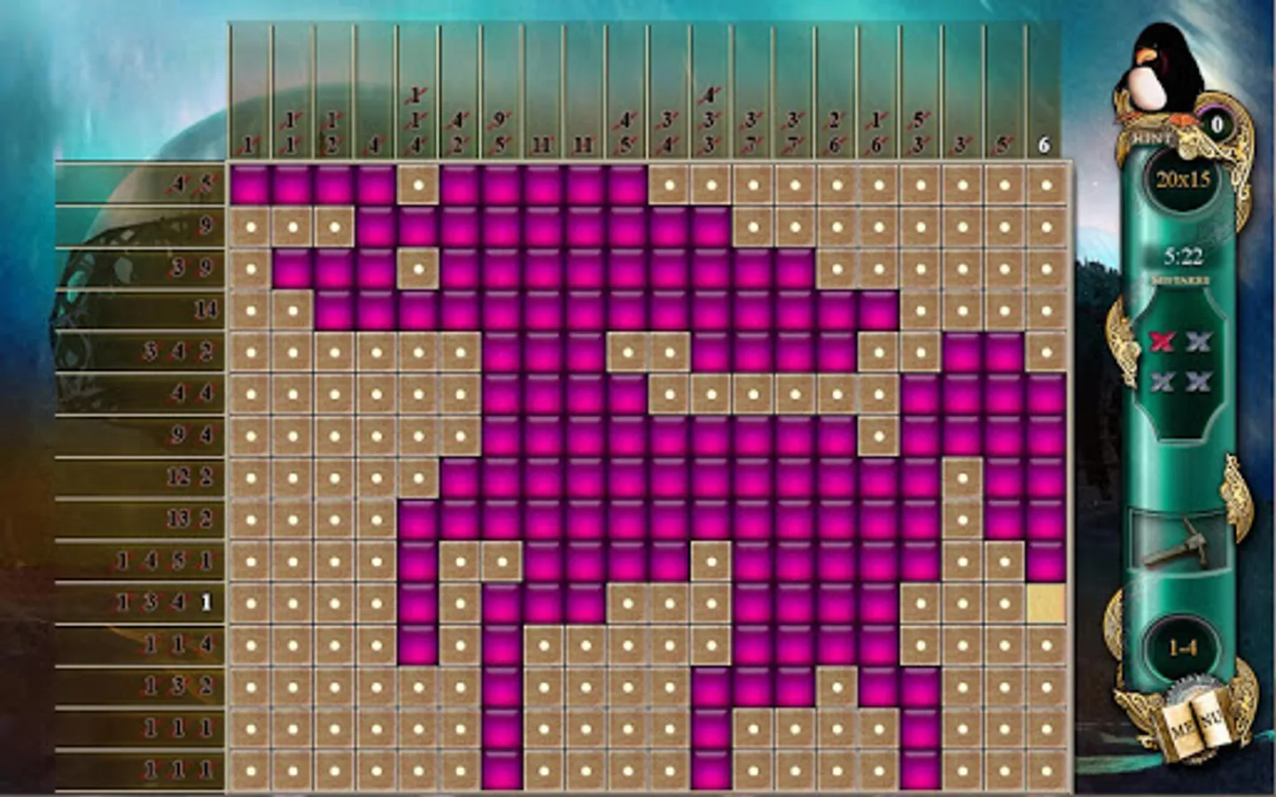 - 100 custom built puzzles also known as picross, hanjie, nonograms, griddlers, paint by numbers.