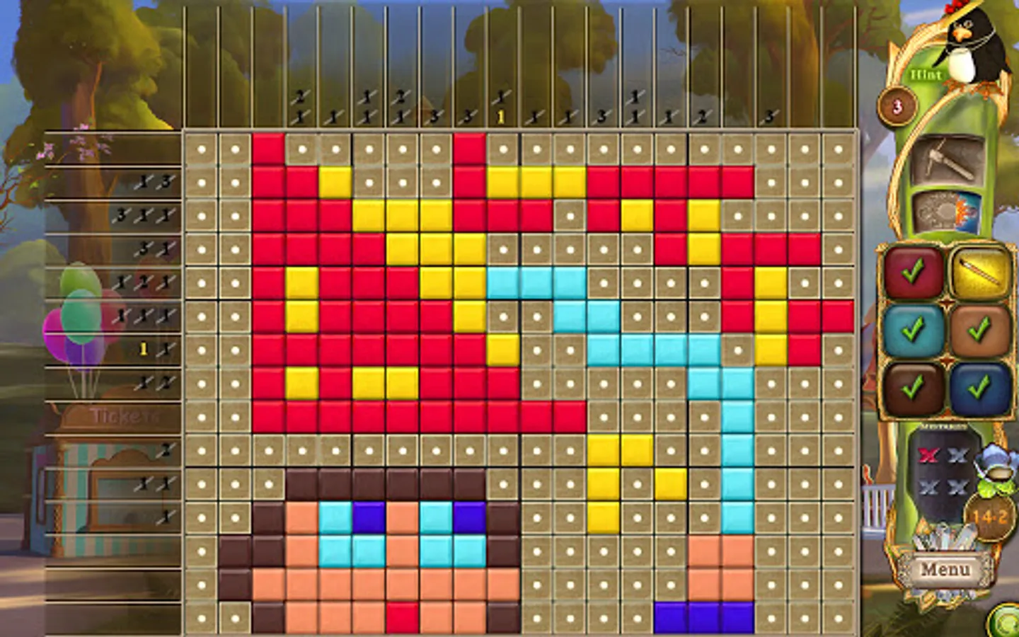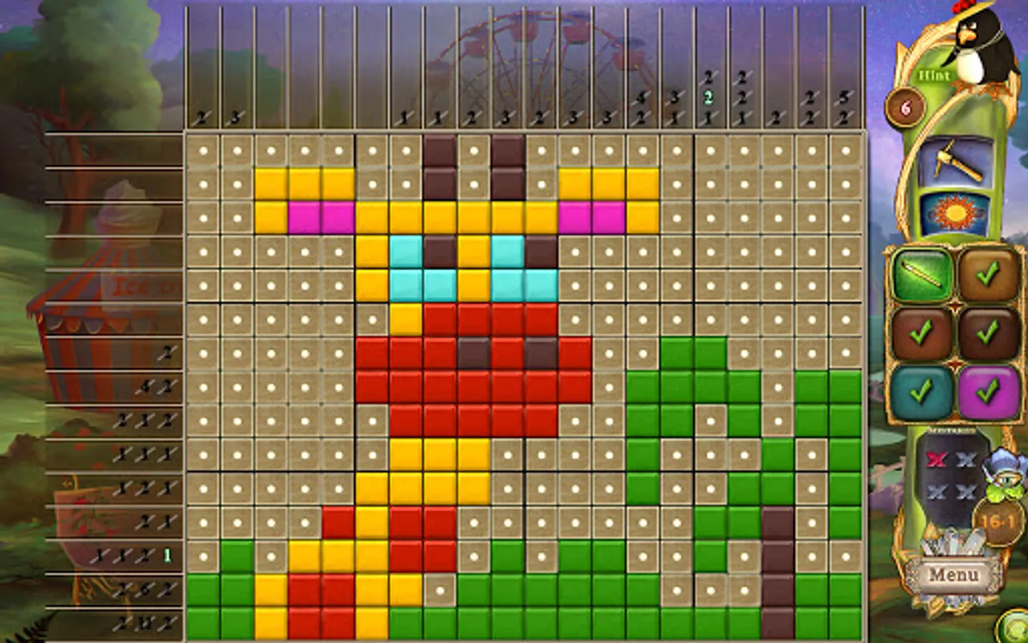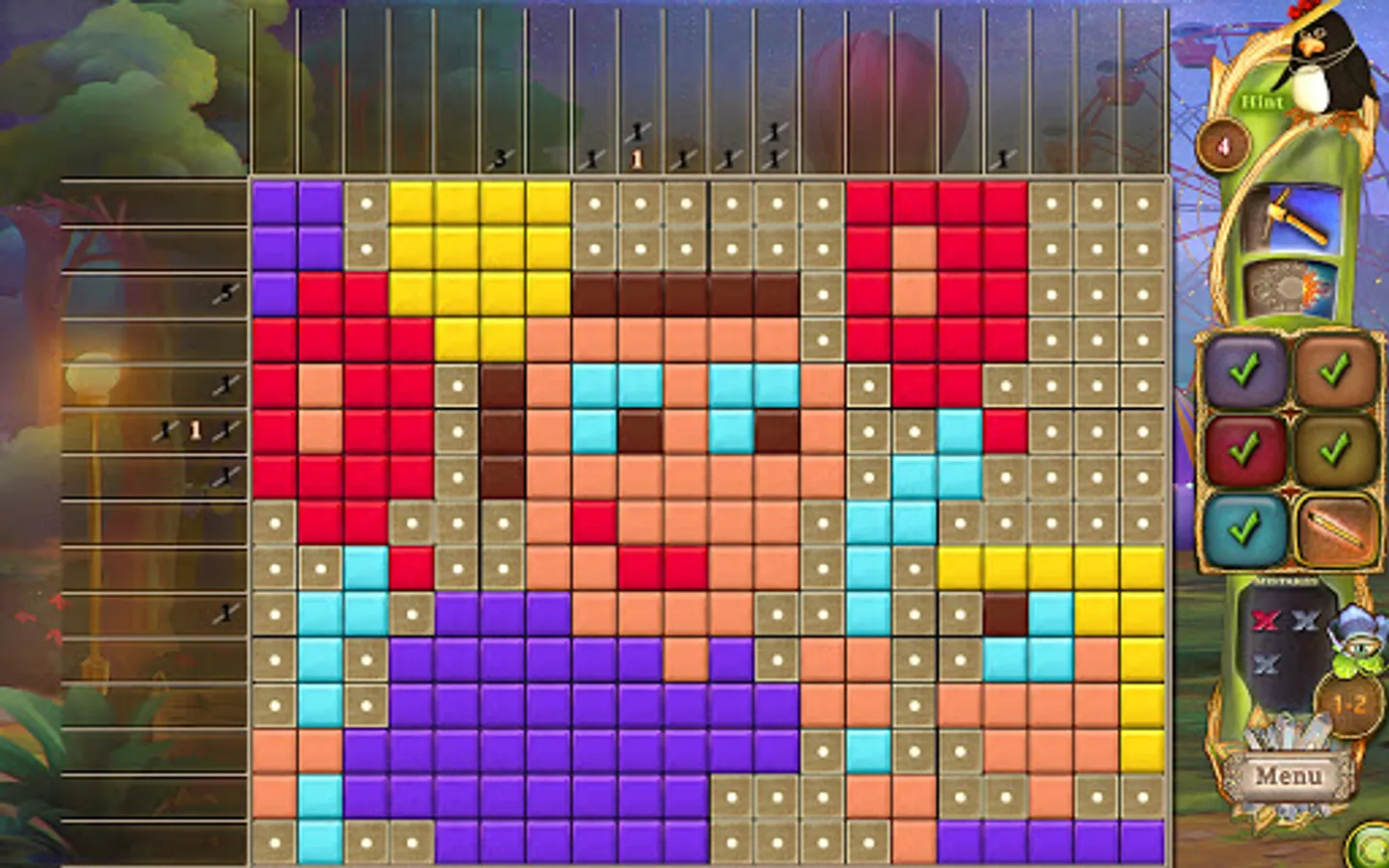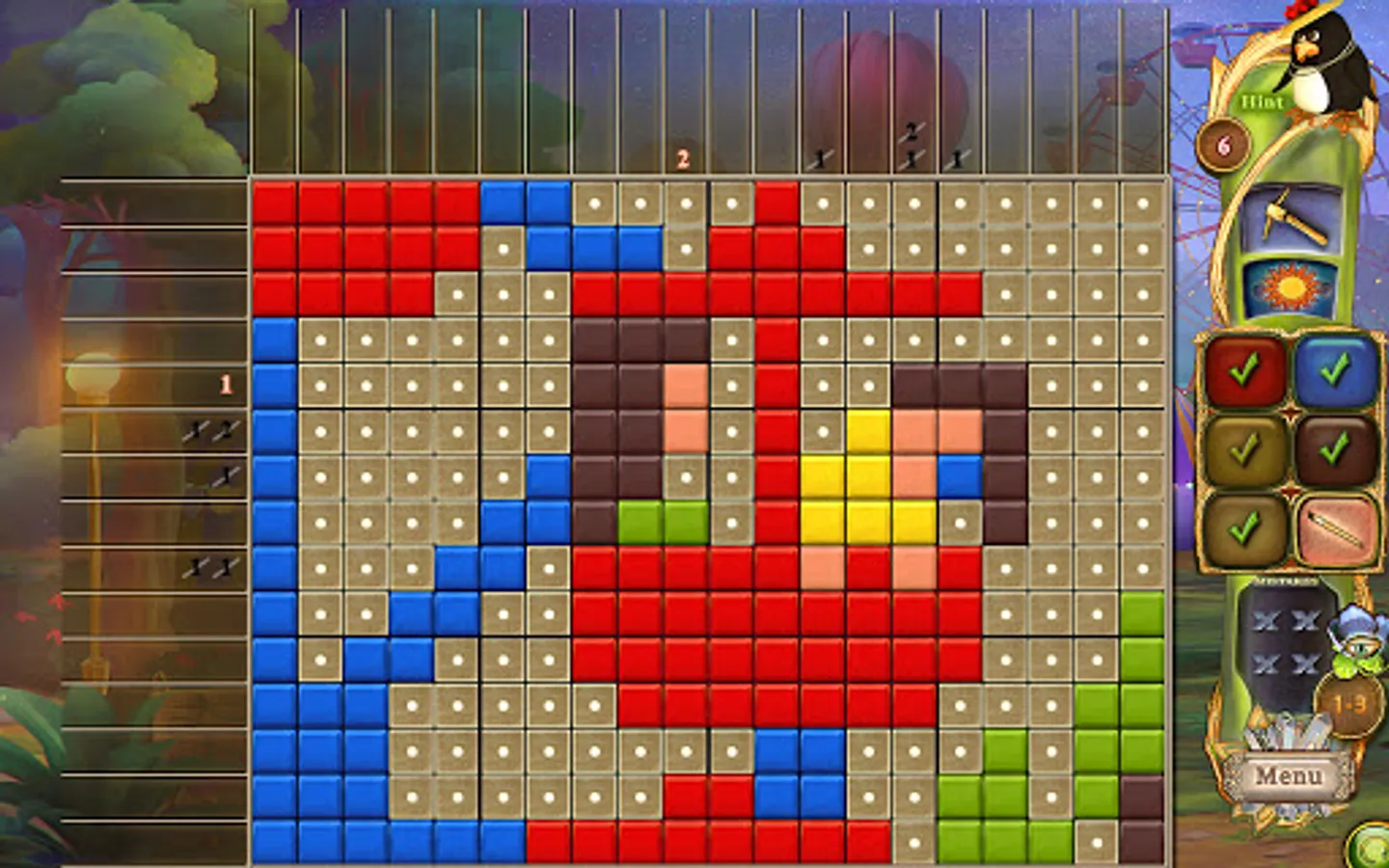 Discover new mosaics that will reveal pixel art images and enjoy a variety of mini games!