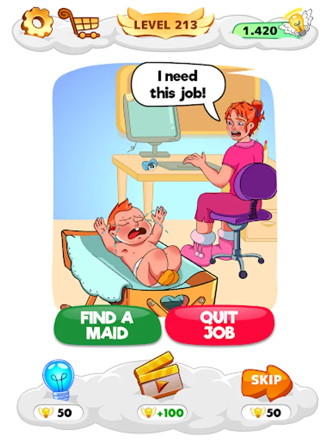 Help Me: Tricky Brain Puzzles is a new breath to all brain games, a kind of brain test with original scenarios and riddles as you play in Braindom. It will blow your brain out, thus you will be the riddle master.