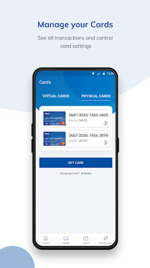 MaxiPAY App comes with features that allows you to manage your card balance, track your spending, suspending, and blocking your card, anytime for security. Quick and simple on-boarding experience allows you to activate your card within seconds. It comes with a physical prepaid card too, which gives you the flexibility to withdraw cash overseas.