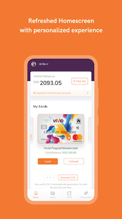 Safer than Cash with unique CW/OTP for every online transaction. Move your money from your card to your account with just one tap. Save with interest when you deposit the money back to Vivid Account.