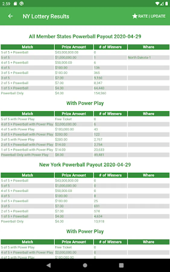 * Payouts - See the number of prize winners for Powerball, Mega Millions