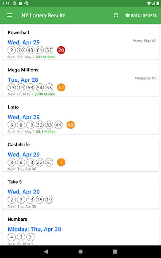 Quickly and easily scroll through all New York lotto draw game results - no need to navigate through multiple menus to find the latest game results.