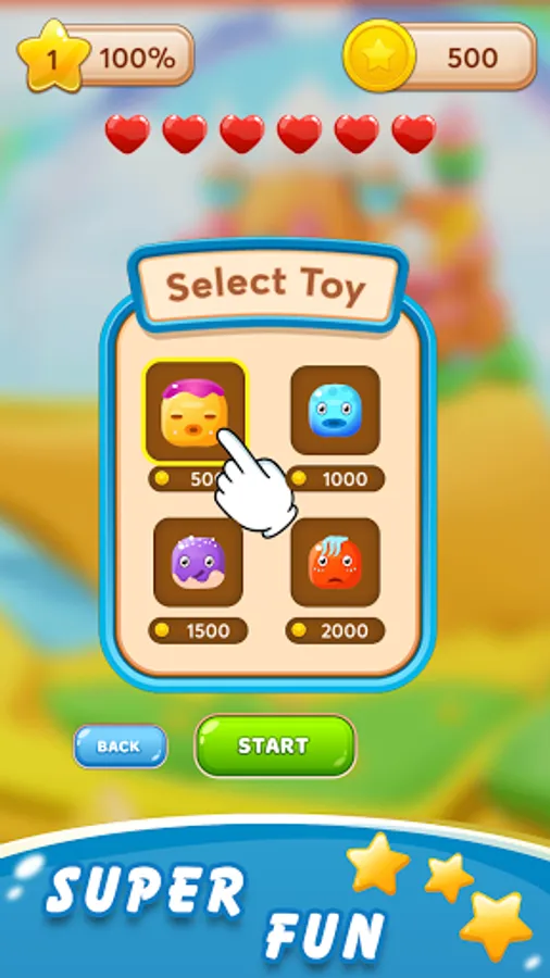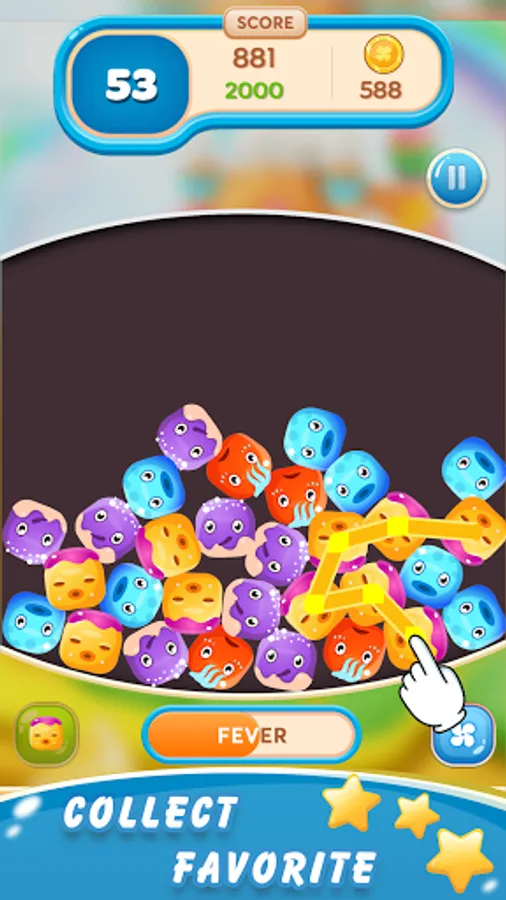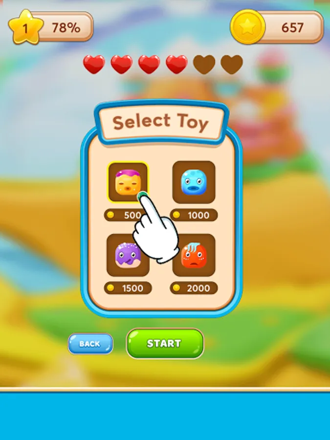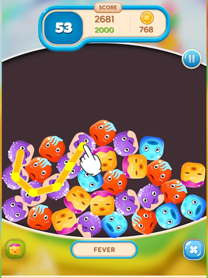 ✓ Select the toy and connect toy icon by tab it Remove 2 toy with the same kind which can be connected within 3 lines.