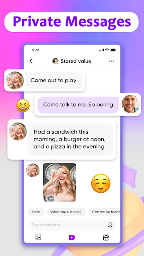 Wanna know friends from different countries yet don't speak their language? Just turn on the instant translation and you can chat freely with people from around the world!