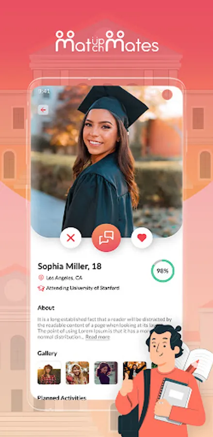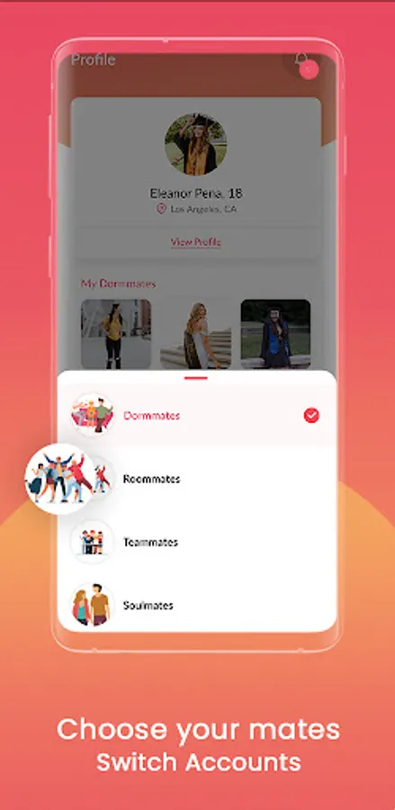 The MuM user friendly app is the perfect way to find your compatible match for a Dormmates, Roommates, Teammates or Soulmates. Simply create your profile information, answer your likes, and connect with other students or partner who match with your personality. You can filter hundreds of potential matches based on location, sex, interests, and lifestyle. We make it easy and fun to find the right people so you can focus on making the most of your experience.