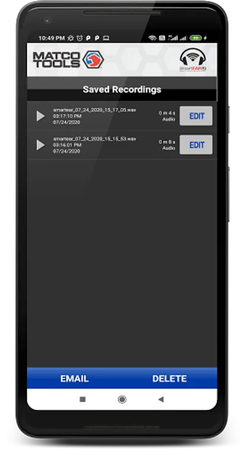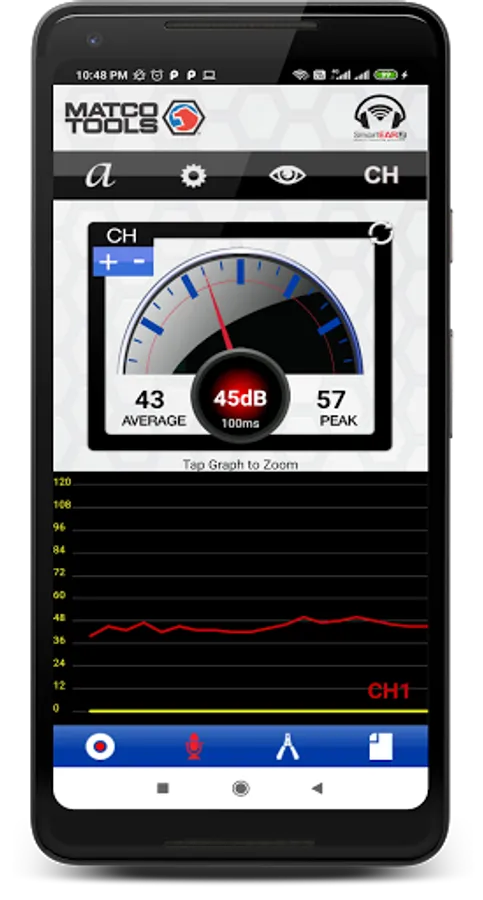 The MATCO TOOLS SmartEAR2 Noise & Vibration Detection app was developed to help assist the service technician in locating and finding defective or worn parts in automobiles, heavy machinery or industrial equipment where vibration, rattles, squeaks and grinding sounds would be associated making the task very difficult or impossible to diagnose.